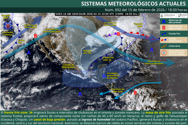 El Servicio Meteorológico Nacional (SMN), fuente oficial del Gobierno de México, informó que el frente frío número 34 ocasionará lluvias, chubascos, rachas de viento fuertes y un refrescamiento de las temperaturas en diversas zonas del territorio nacional durante la tarde de este domingo y la […]