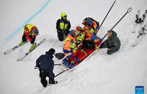 LIVIGNO, 19 febrero, 2026 (Xinhua) — Cassie Sharpe, de Canadá, recibe tratamiento tras caer durante la clasificación del halfpipe femenino de esquí acrobático en los Juegos Olímpicos de Invierno Milán-Cortina 2026, en Livigno, Italia, el 19 de febrero de 2026. (Xinhua/Xia Yifang)