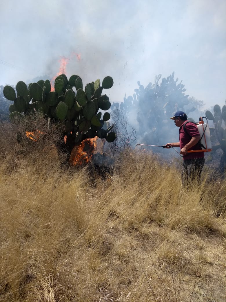 En el número de emergencia 911 se recibió el reporte en el que informaban que en la comunidad de San Rafael de Ocampo, a la altura de la Loma de los Galindo, se efectuaba un incendio de pasto, el cual se estaba extendiendo rápidamente por lo que era solicitada la intervención de los traga humo.