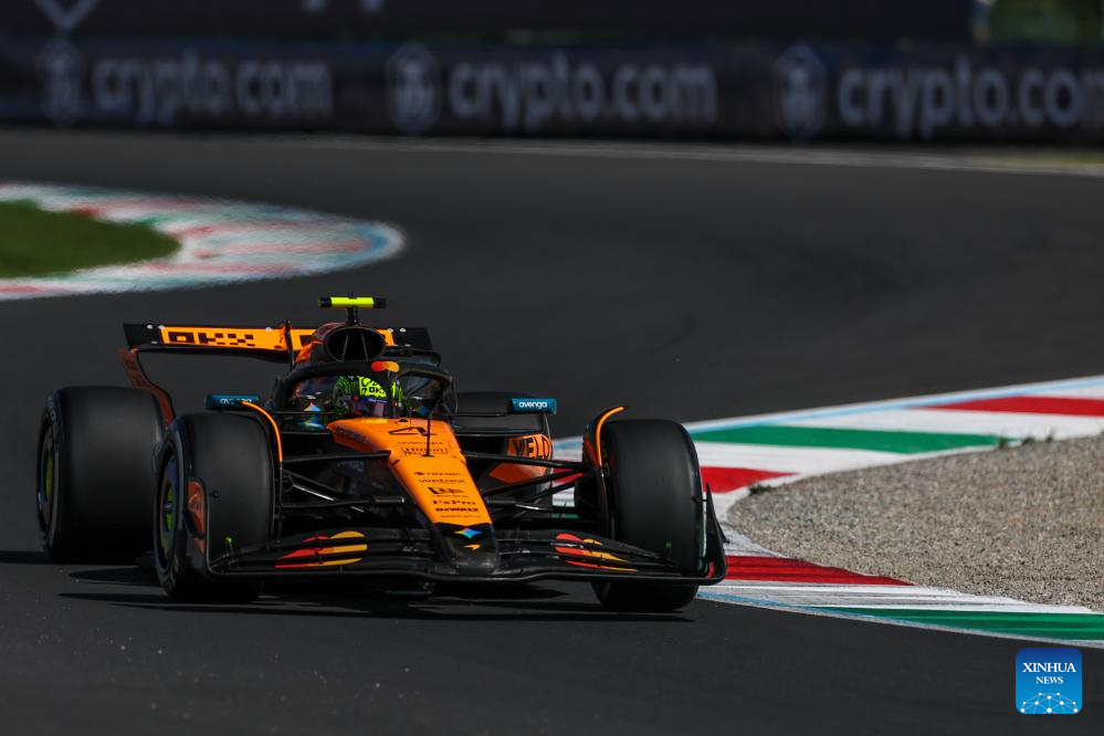 MONZA, 7 septiembre, 2025 (Xinhua) — Imagen del 6 de septiembre de 2025 del piloto británico de la escudería McLaren, Lando Norris, compitiendo durante de la sesión de clasificación del Gran Premio de Italia de Fórmula 1, en el Circuito de Monza, cerca de Milán, Italia. (Xinhua/Qian Jun)