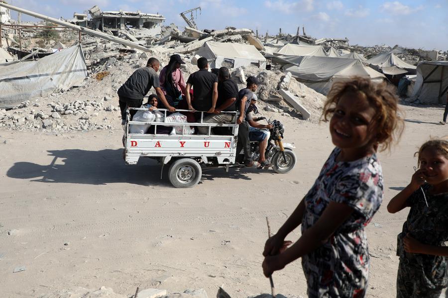 (250909) — GAZA, 9 septiembre, 2025 (Xinhua) — Palestinos desplazados huyen con sus pertenencias desde el norte de la Franja de Gaza hacia el sur, el 9 de septiembre de 2025. El Ejército israelí ordenó el martes a todos los residentes de la Ciudad de Gaza que evacuaran antes de un ataque ampliado, advirtiendo que quienes se quedaran correrían un grave peligro. Foto/Xinhua/Rizek Abdeljawad).