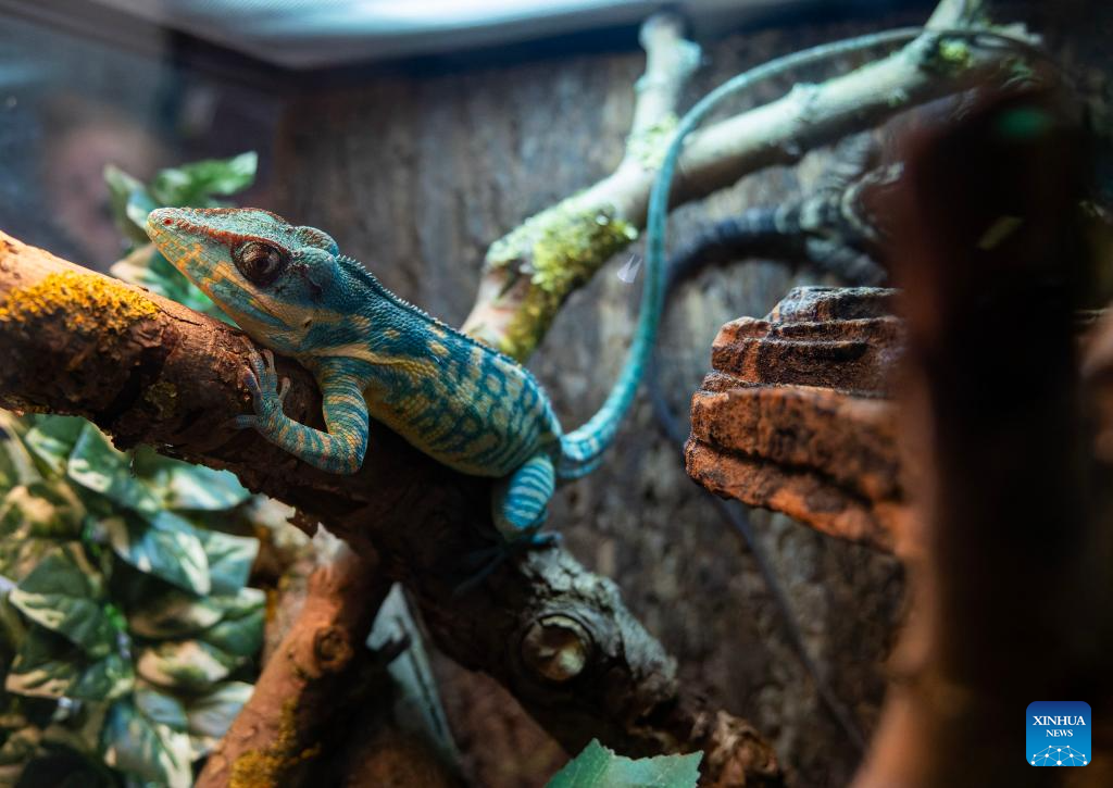 MISSISSAUGA, 14 septiembre, 2025 (Xinhua) — Imagen del 13 de septiembre de 2025 de un anolis azul visto durante la Exposición Canadiense de Mascotas de Otoño 2025, en Mississauga, Ontario, Canadá. Este evento, que incluye un mercado de mascotas, concursos de mascotas y mucho más, se celebra aquí del 13 al 14 de septiembre con la participación de miles de familias y sus mascotas. (Xinhua/Zou Zheng)