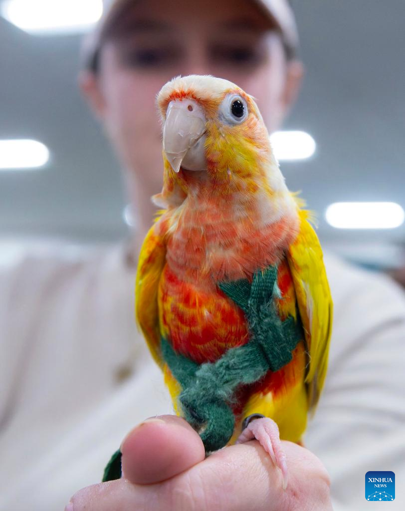 MISSISSAUGA, 14 septiembre, 2025 (Xinhua) — Imagen del 13 de septiembre de 2025 de una mujer mostrando su loro durante la Exposición Canadiense de Mascotas de otoño de 2025, en Mississauga, Ontario, Canadá. Este evento, que incluye un mercado de mascotas, concursos de mascotas y mucho más, se celebra aquí del 13 al 14 de septiembre con la participación de miles de familias y sus mascotas. (Xinhua/Zou Zheng)
