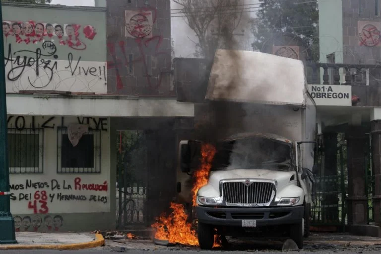Lo anterior ocurrió en el marco de la “Jornada de Lucha Ayotzinapa” por el 11 aniversario de la desaparición forzada de los 43 estudiantes normalistas de Ayotzinapa, ocurrida el 26 de septiembre de 2014 en Iguala, Guerrero.