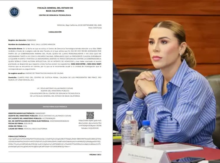 Mexicali, B.C. – Raúl Saúl Lucero Aragón ha presentado una nueva denuncia formal ante la Fiscalía General del Estado de Baja California, en la que precisa haber recibido amenazas de muerte vinculadas a la Gobernadora del Estado, Marina del Pilar Ávila Olmeda.