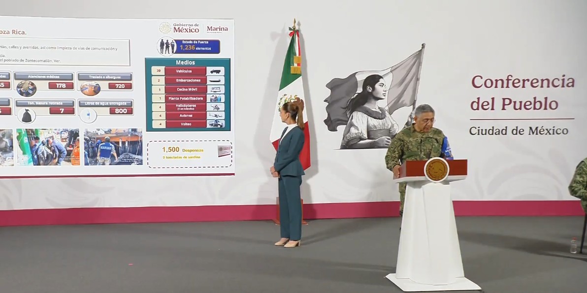 Claudia Sheinbaum se presentó tanto como pudo como la heredera y continuadora de la obra de Andrés Manuel López Obrador en materia de atención a las personas damnificadas por este tipo de eventos, así como en la principal promotora del trabajo hecho en este contexto tanto por la Secretaría de la Defensa Nacional como por la de Marina-Armada de México.