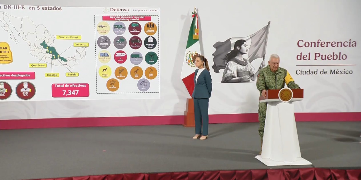 Estuvo también presente la titular de la Comisión Federal de Electricidad, Emilia Calleja, quien se comprometió a restablecer la energía eléctrica a la brevedad posible a los poco más de un cuarto de millón de personas que, según su estimado, están actualmente sin servicio en los cinco estados ya referidos: Hidalgo, Puebla, Querétaro, San Luis Potosí y Veracruz.