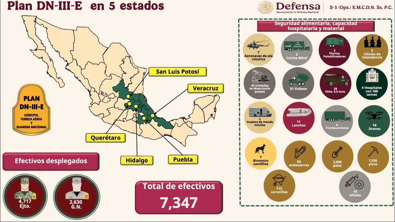 En total, el gobierno de México reconoce 64 personas fallecidas, un total de 65 desparecidas y afectaciones de diversa índole en 111 municipios de cinco entidades de la República.