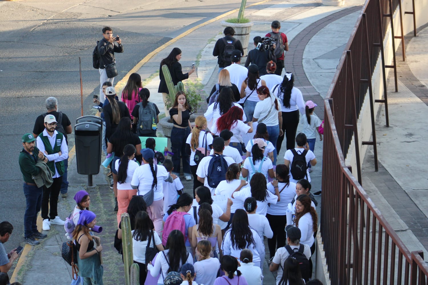 Con pancartas, flores blancas y gritos de “¡Justicia para Ángela!”, los manifestantes ocuparon la explanada principal de la institución y denunciaron la indiferencia de las autoridades ante la creciente violencia contra las mujeres y las niñas.
