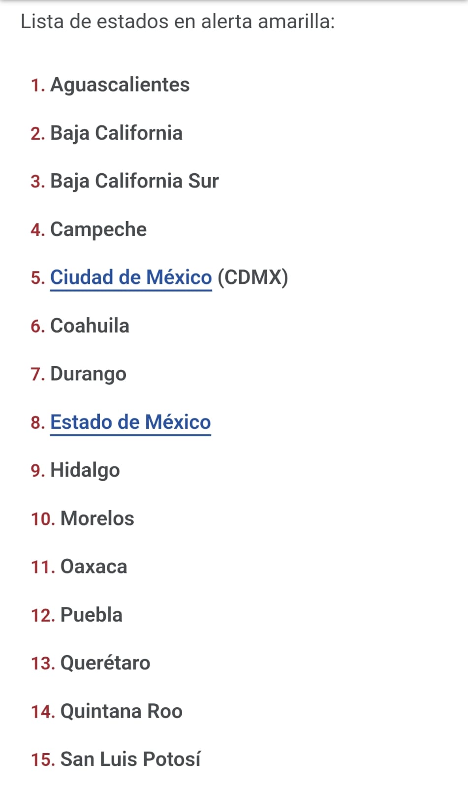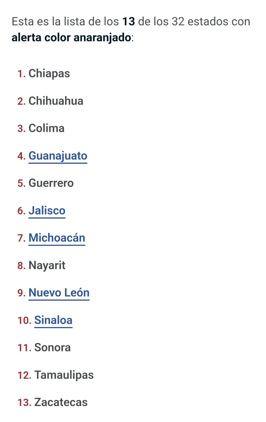 🟠 Estados en alerta naranja (evitar viajes no esenciales)