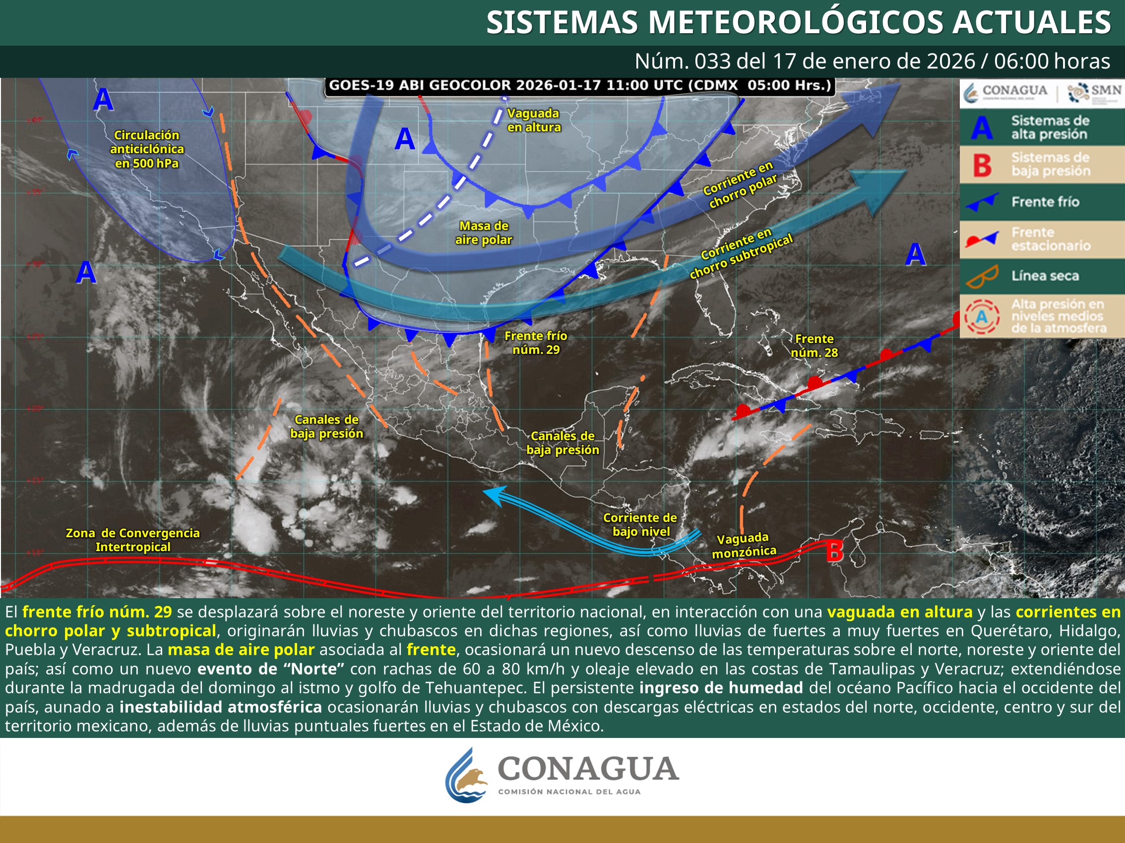 🌡️ Clima hoy en México y en Aguascalientes — sábado 17 de enero de 2026