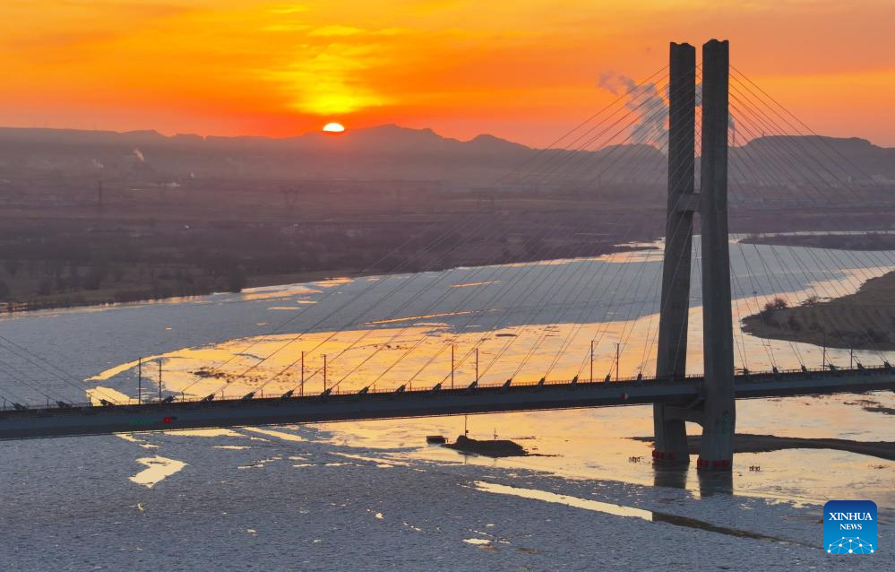 YINCHUAN, 21 enero, 2026 (Xinhua) — Vista aérea tomada con un dron el 21 de enero de 2026 de la superficie congelada del río Amarillo a lo largo de la frontera entre la ciudad de Shizuishan de la región autónoma hui de Ningxia, en el noroeste de China, y la ciudad de Wuhai de la región autónoma de Mongolia Interior, en el norte de China, en medio de una ola de frío. (Xinhua/Yuan Hongyan)