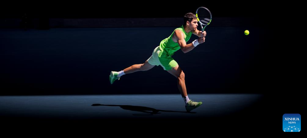 MELBOURNE, 23 enero, 2026 (Xinhua) — Carlos Alcaraz, de España, devuelve la pelota durante el partido de tercera ronda de individuales masculinos ante Corentin Moutet, de Francia, en el torneo de tenis Abierto de Australia, en Melbourne, Australia, el 23 de enero de 2026. (Xinhua/Hu Jingchen)