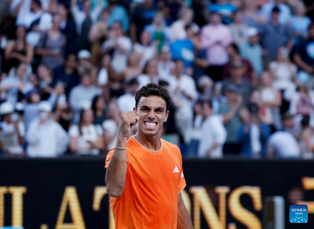 MELBOURNE, 23 enero, 2026 (Xinhua) — Francisco Cerúndolo festeja después de ganar el partido de tercera ronda de individuales masculinos entre Andrey Rublev, de Rusia, y Francisco Cerúndolo, de Argentina, en el torneo de tenis Abierto de Australia, en Melbourne, Australia, el 23 de enero de 2026. (Xinhua/Ma Ping)