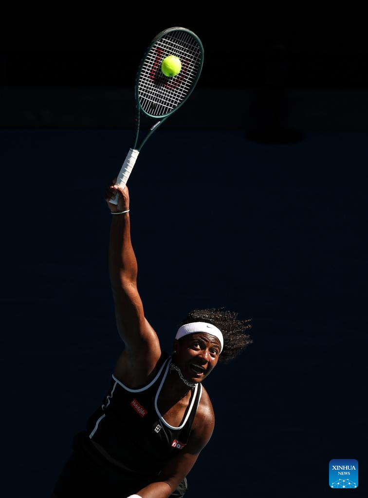 MELBOURNE, 23 enero, 2026 (Xinhua) — Coco Gauff, de Estados Unidos, compite durante el partido de tercera ronda de individuales femeninos ante Hailey Baptiste, de Estados Unidos, en el torneo de tenis Abierto de Australia, en Melbourne, Australia, el 23 de enero de 2026. (Xinhua/Hu Jingchen)