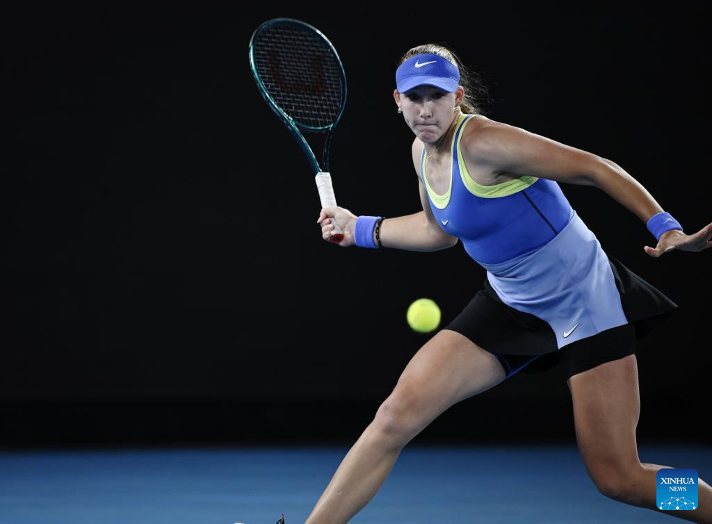 MELBOURNE, 23 enero, 2026 (Xinhua) — Mirra Andreeva devuelve la pelota durante el partido de tercera ronda de individuales femeninos entre Elena-Gabriela Ruse, de Rumania, y Mirra Andreeva, de Rusia, en el torneo de tenis Abierto de Australia, en Melbourne, Australia, el 23 de enero de 2026. (Xinhua/Wang Shen)