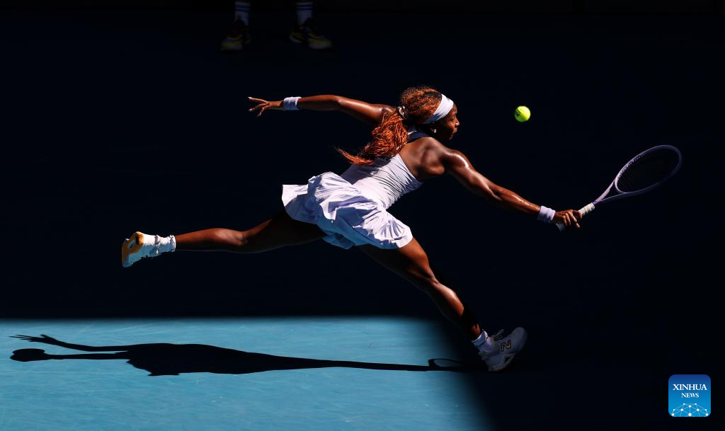 MELBOURNE, 23 enero, 2026 (Xinhua) — Coco Gauff, de Estados Unidos, devuelve la pelota durante el partido de tercera ronda de individuales femeninos ante Hailey Baptiste, de Estados Unidos, en el torneo de tenis Abierto de Australia, en Melbourne, Australia, el 23 de enero de 2026. (Xinhua/Ma Ping)