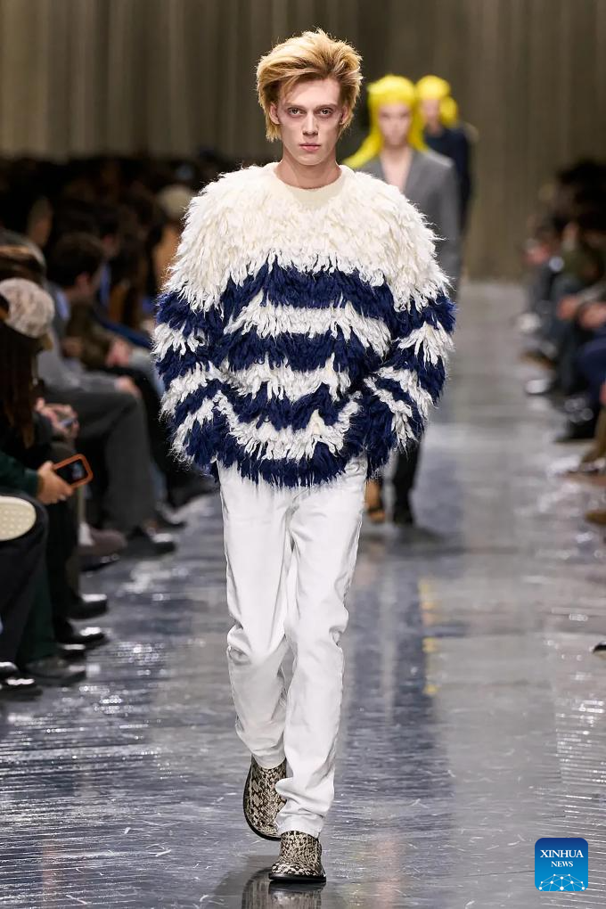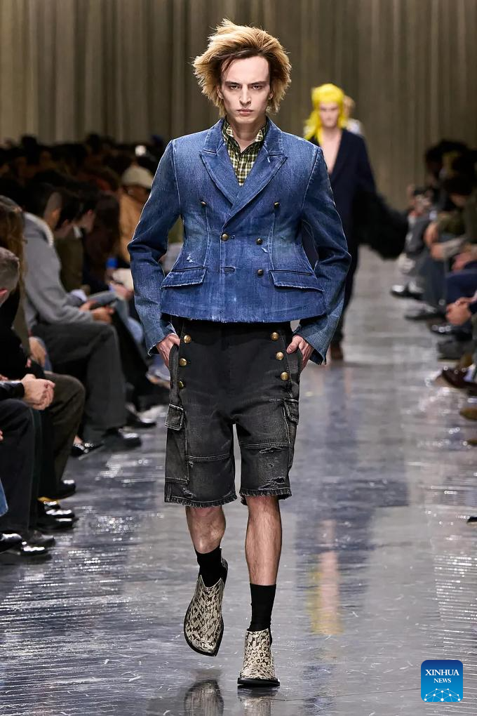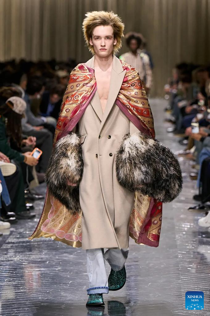 PARIS, 22 enero, 2026 (Xinhua) — Imagen del 21 de enero de 2026 de un modelo presentando una creación de las colecciones masculinas Otoño/Invierno 2026-2027 de Dior Homme durante la Semana de la Moda de París, en París, Francia. (Xinhua/MeetEurope)