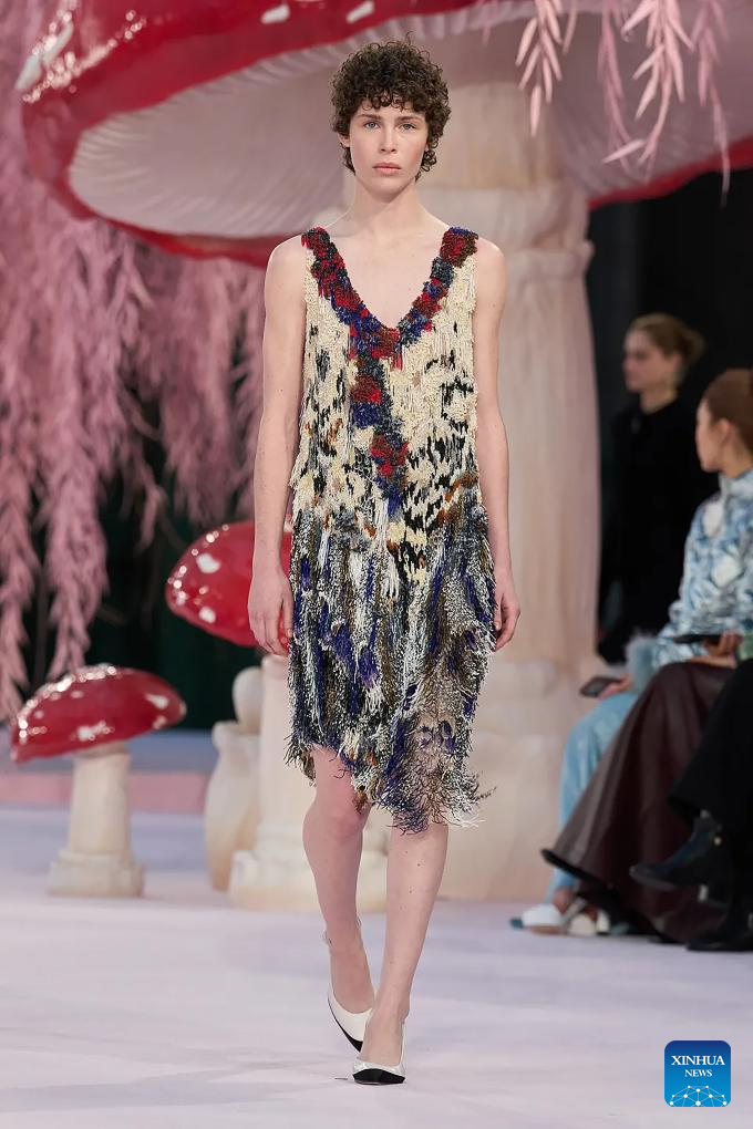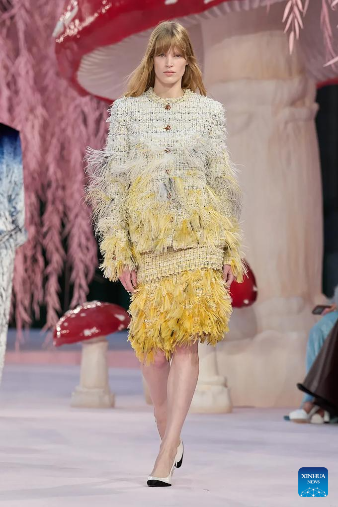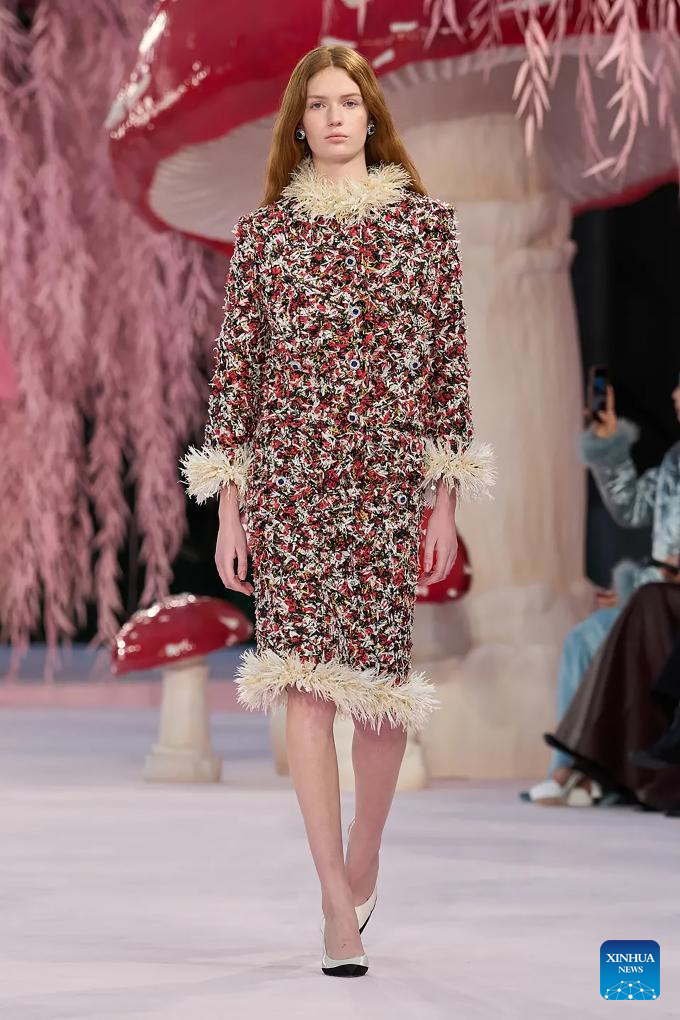 PARIS, 27 enero, 2026 (Xinhua) — Una modelo presenta una creación de Matthieu Blazy para Chanel durante la Semana de la Alta Costura de París Primavera/Verano 2026, en París, Francia, el 27 de enero de 2026. (Xinhua/MeetEurope)