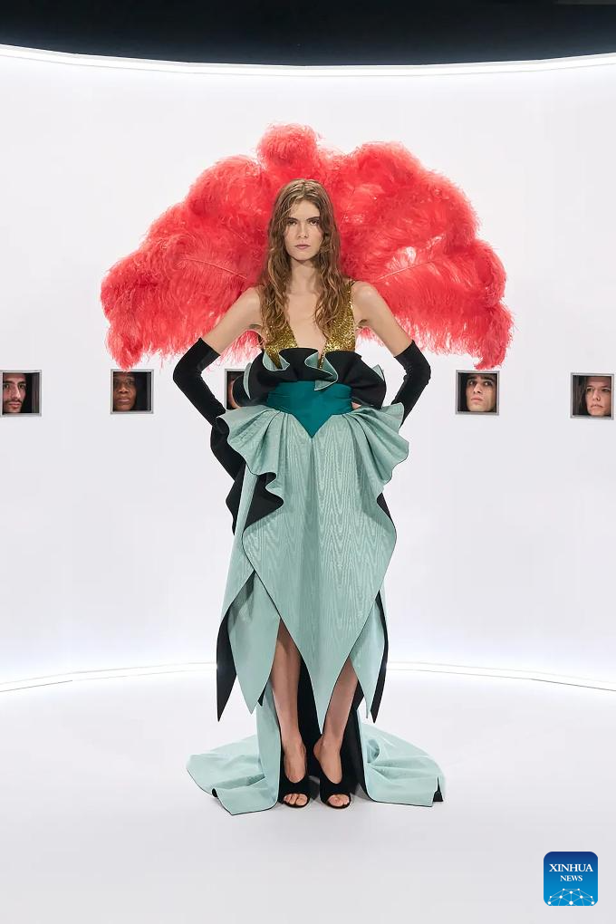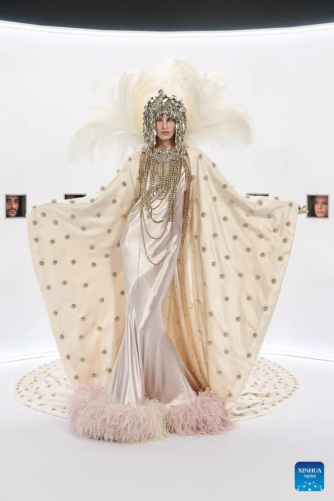 PARIS, 28 enero, 2026 (Xinhua) — Una modelo presenta una creación de Alessandro Michele para Valentino durante la Semana de la Alta Costura Primavera/Verano 2026, en París, Francia, el 28 de enero de 2026. (Xinhua/MeetEurope)