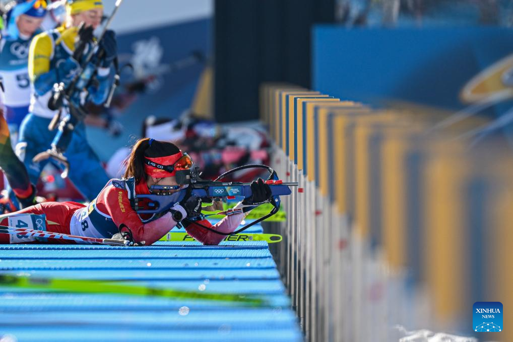 ANTERSELVA, 15 febrero, 2026 (Xinhua) — Meng Fanqi, de China, compite durante la persecución de 10 km femenina de biatlón en los Juegos Olímpicos de Invierno Milán-Cortina 2026, en Anterselva, Italia, el 15 de febrero de 2026. (Xinhua/Jiang Han)