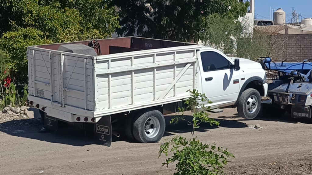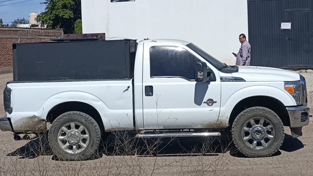 Las unidades incautadas son una camioneta Ram de doble rodado con placas de Nuevo León, la cual cuenta con una burbuja en la caja diseñada para empotrar armamento de grueso calibre, y una Ford Super Duty blanca, también con blindaje artesanal y una caja metálica en la batea.