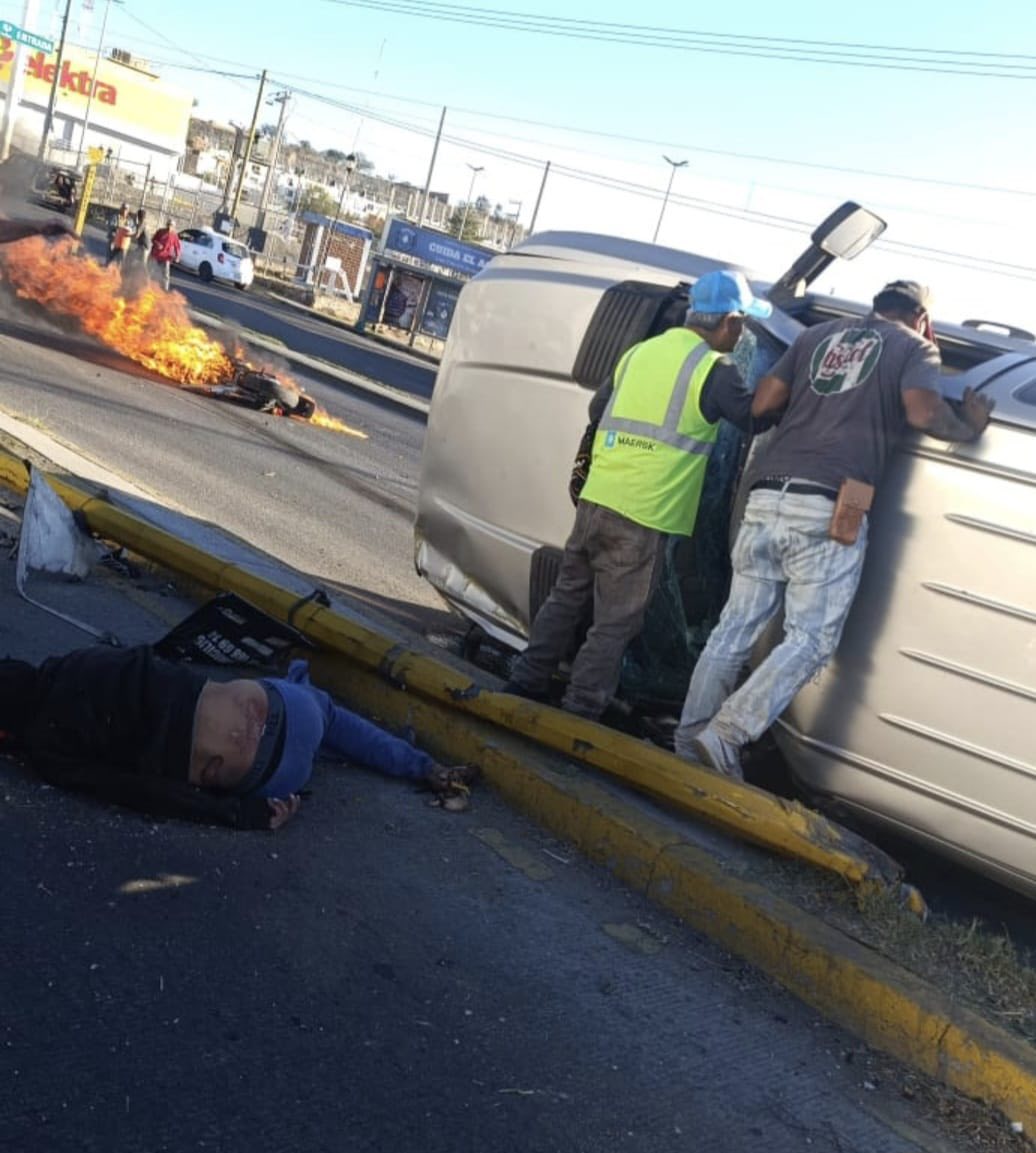AGUASCALIENTES, AGS. – Un dramático accidente vial se registró la tarde de este martes en el oriente de la ciudad, específicamente en el cruce de la Avenida Siglo XXI (Tercer Anillo) y la calle Jerónimo de la Cueva, en el fraccionamiento Villas de Nuestra Señora de la Asunción. El saldo preliminar es de cuatro personas heridas, una de ellas de extrema gravedad.