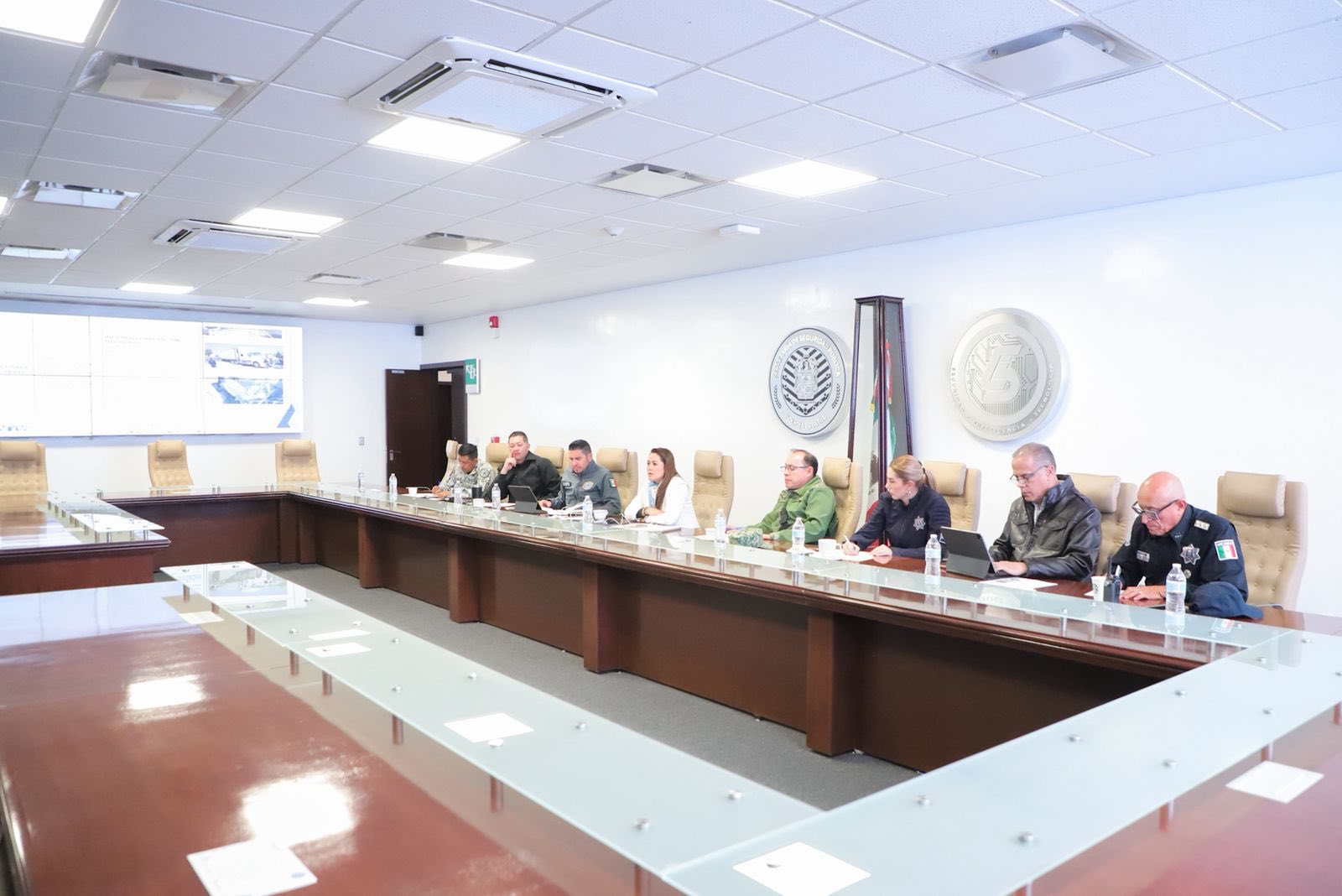 En la reunión participan Álvaro Javier Juárez Vázquez, comandante de la 14/a. Zona Militar; Rey David Quiroz Pavón, representante de la Guardia Nacional;