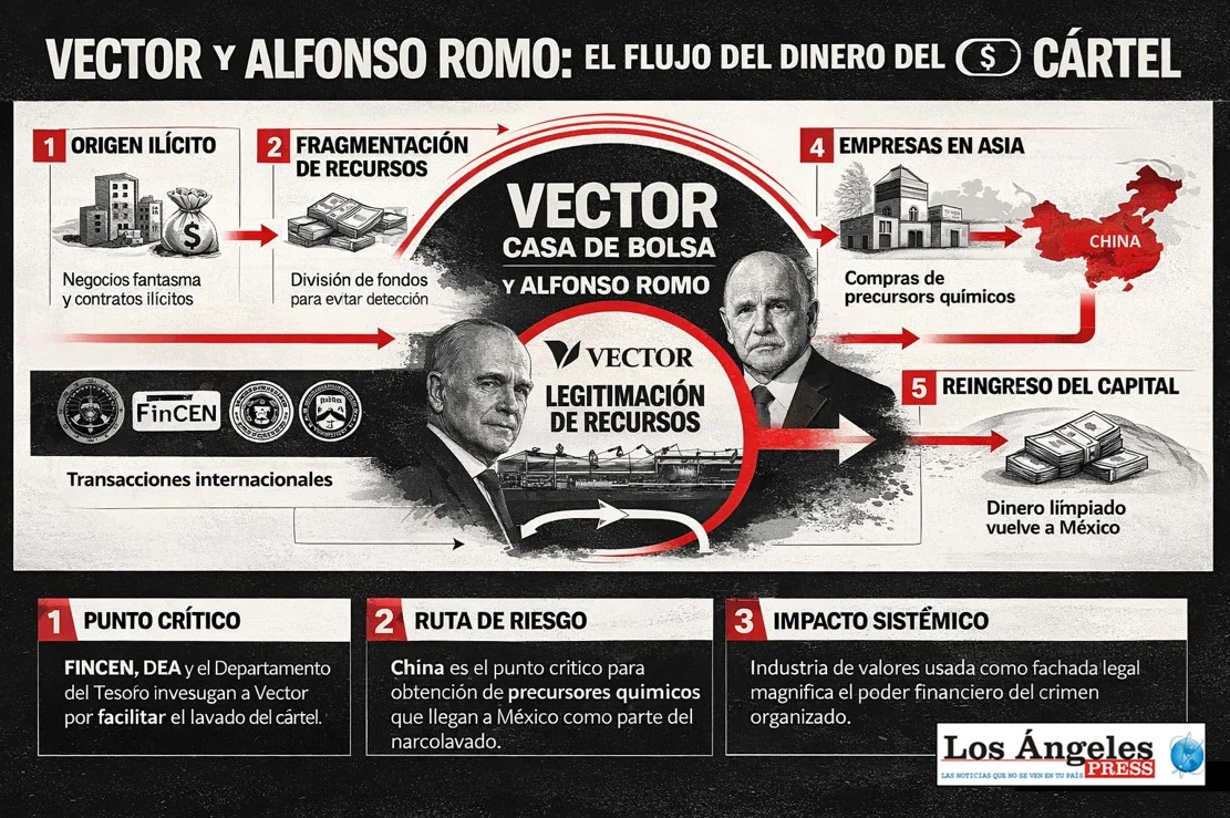 Durante décadas, Vector Casa de Bolsa, S.A. de C.V. no fue únicamente una institución financiera inscrita dentro del sistema bursátil mexicano. Fue una pieza de infraestructura. No por nada, Alfonso Romo, que fue jefe de la Oficina de la Presidencia de Andrés Manuel López Obrador, fue su principal operador financiero entre el narcotráfico y el sistema político mexicano durante los últimos nueve años, según lo que se tiene documentado por agencias norteamericanas. Hoy, Alfonso Romo está colaborando con el Departamento de Justicia de los Estados Unidos de Norteamérica y con algunas agencias de seguridad, como la DEA y el propio Departamento del Tesoro.