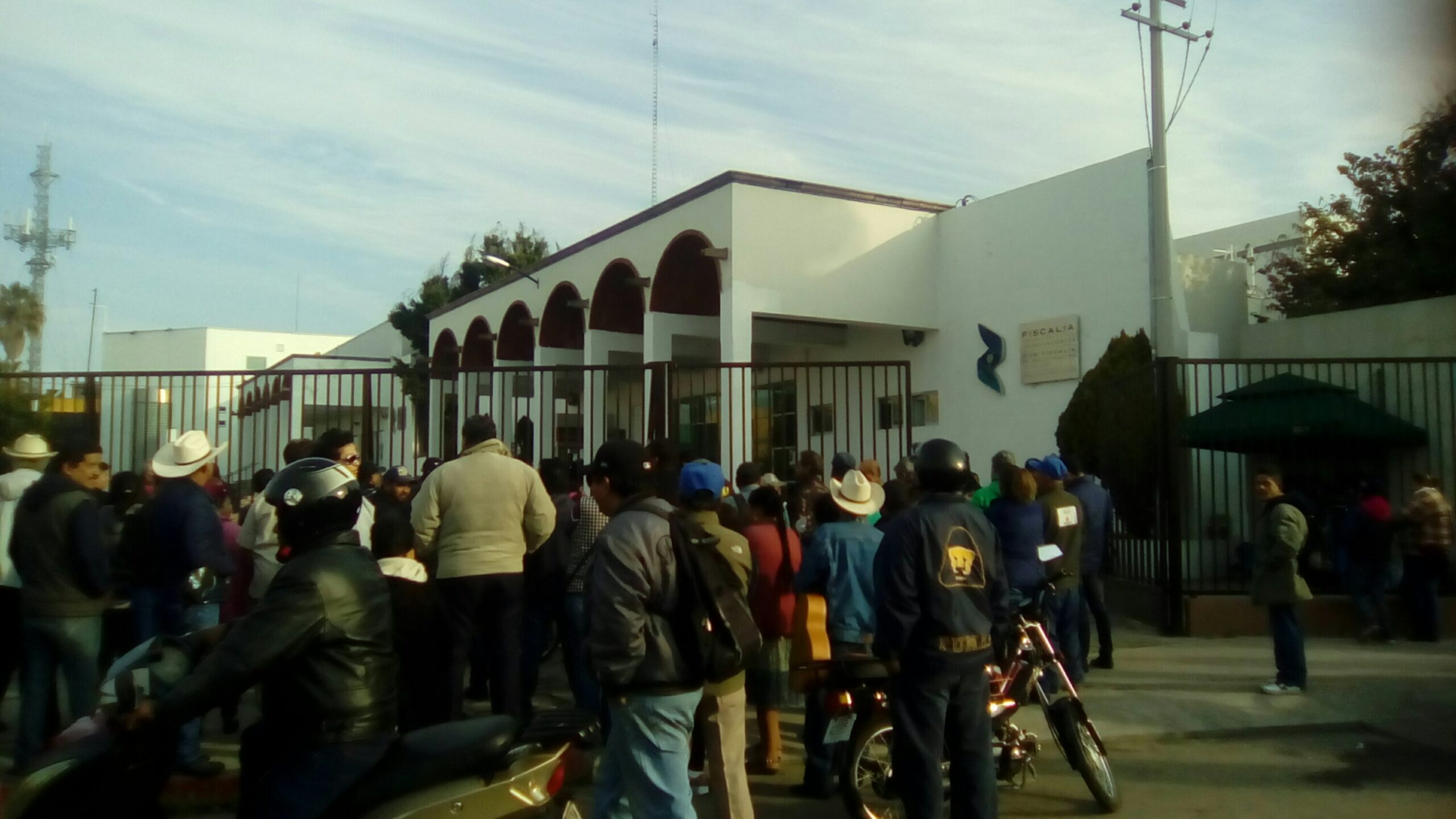 La bestia de José Luis Morales informando a la población y a su director afuera de la Ficalia General del estado de Aguascaientes. Foto: Eric García/objetivo7fotógrafos.